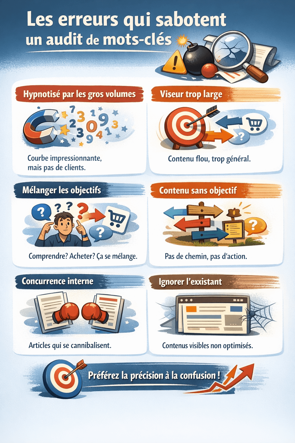 Il y a des audits qui “font sérieux”… et qui ne changent rien. Pas parce que la méthode est mauvaise, mais parce que quelques erreurs classiques viennent tout plomber.